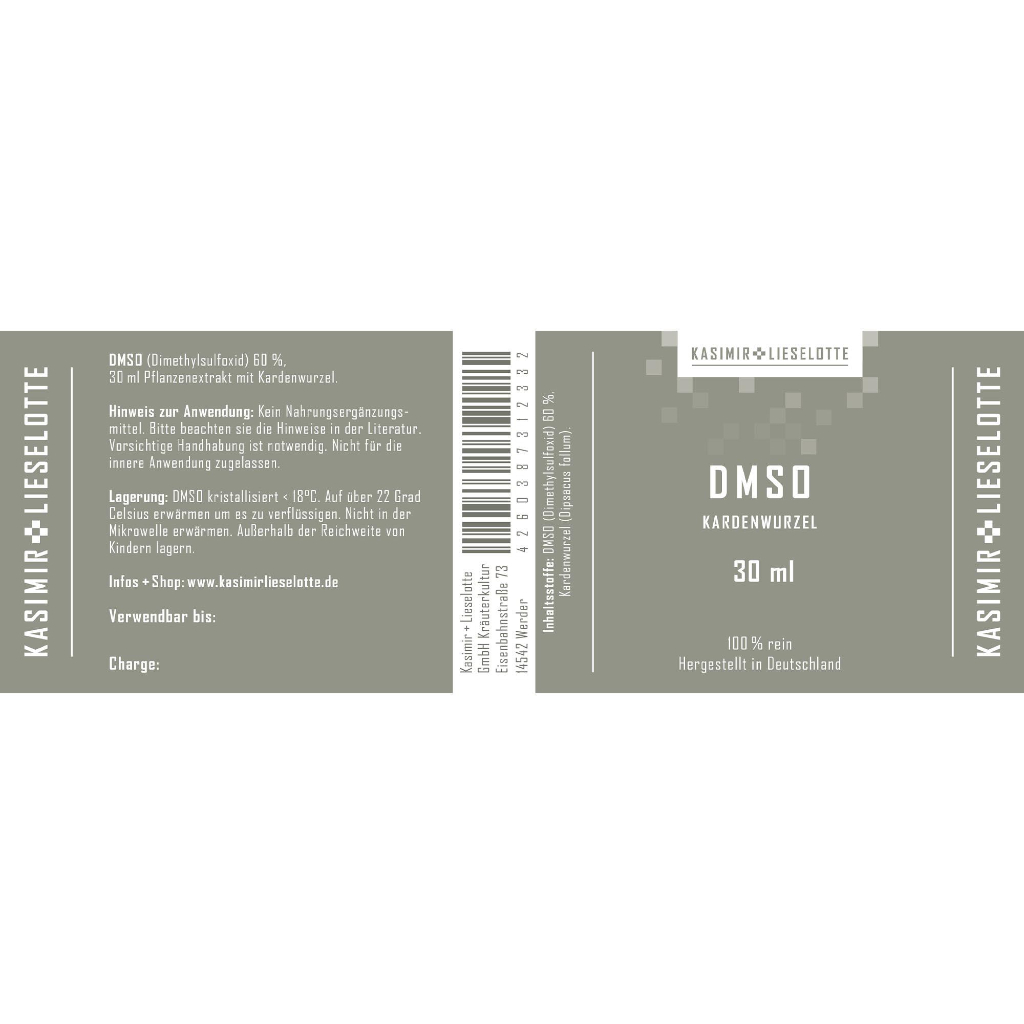 DMSO (Dimethylsulfoxid) 60%, frische Kardewurzel.
