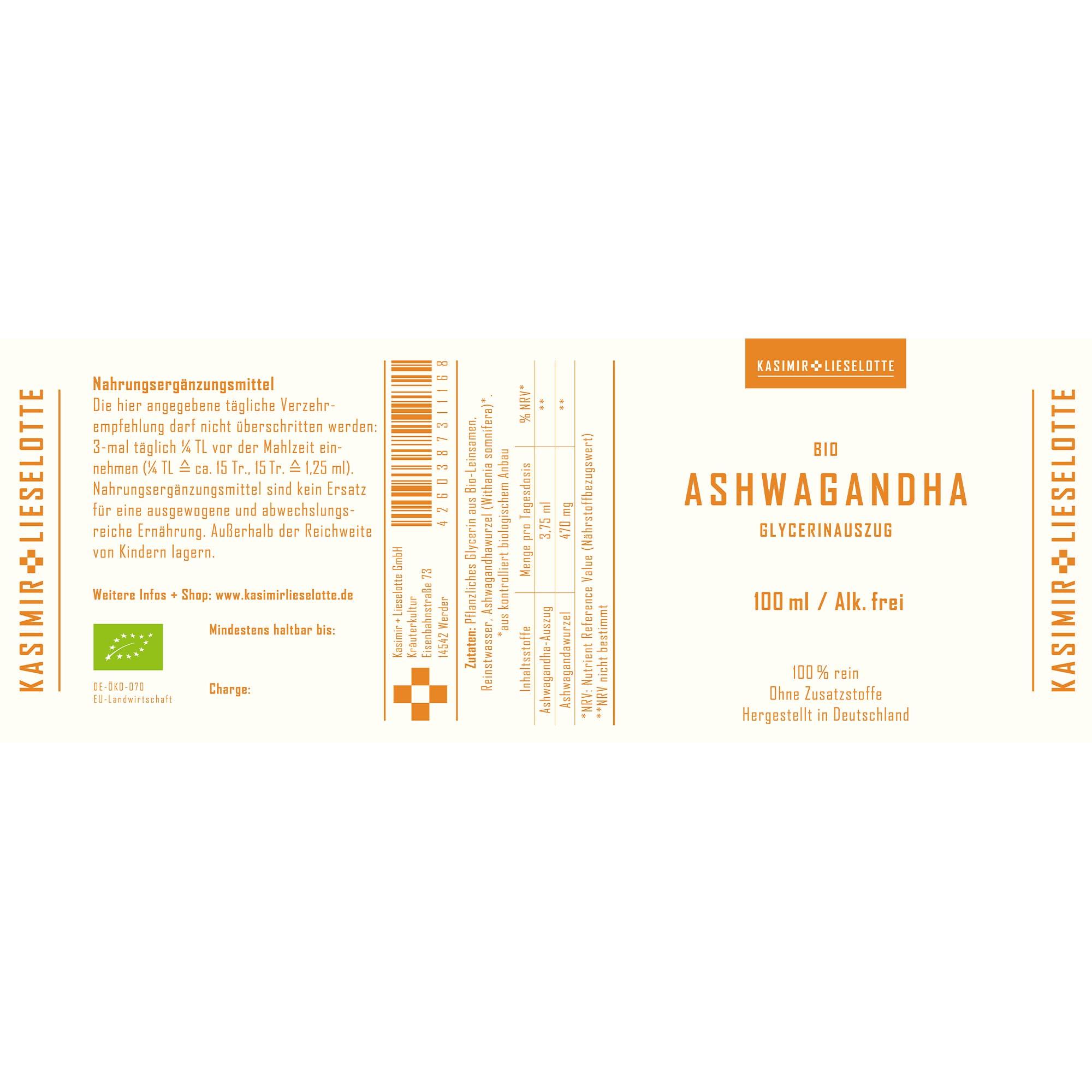 Rein pflanzliches Glycerin aus Bio-Leinsamen, Reinstwasser, Ashwagandhawurzel.