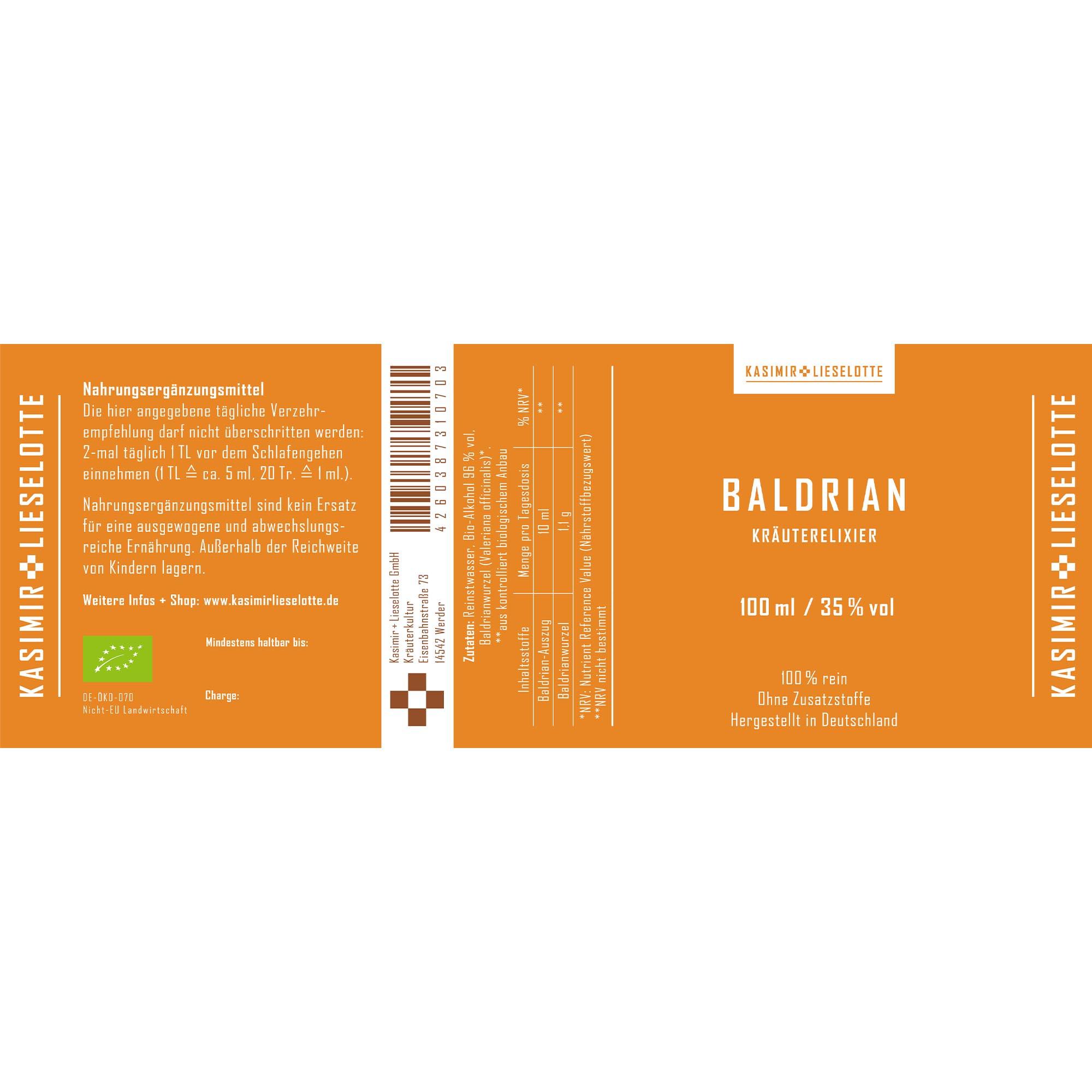 Reinstwasser, Bio-Alkohol (Alk. 96% vol), Baldrianwurzel*.