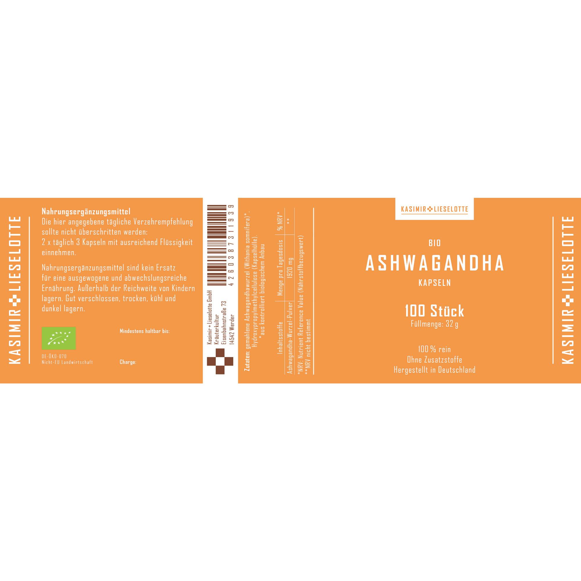 Bio Zertifizierung Ashwagandha Kapseln