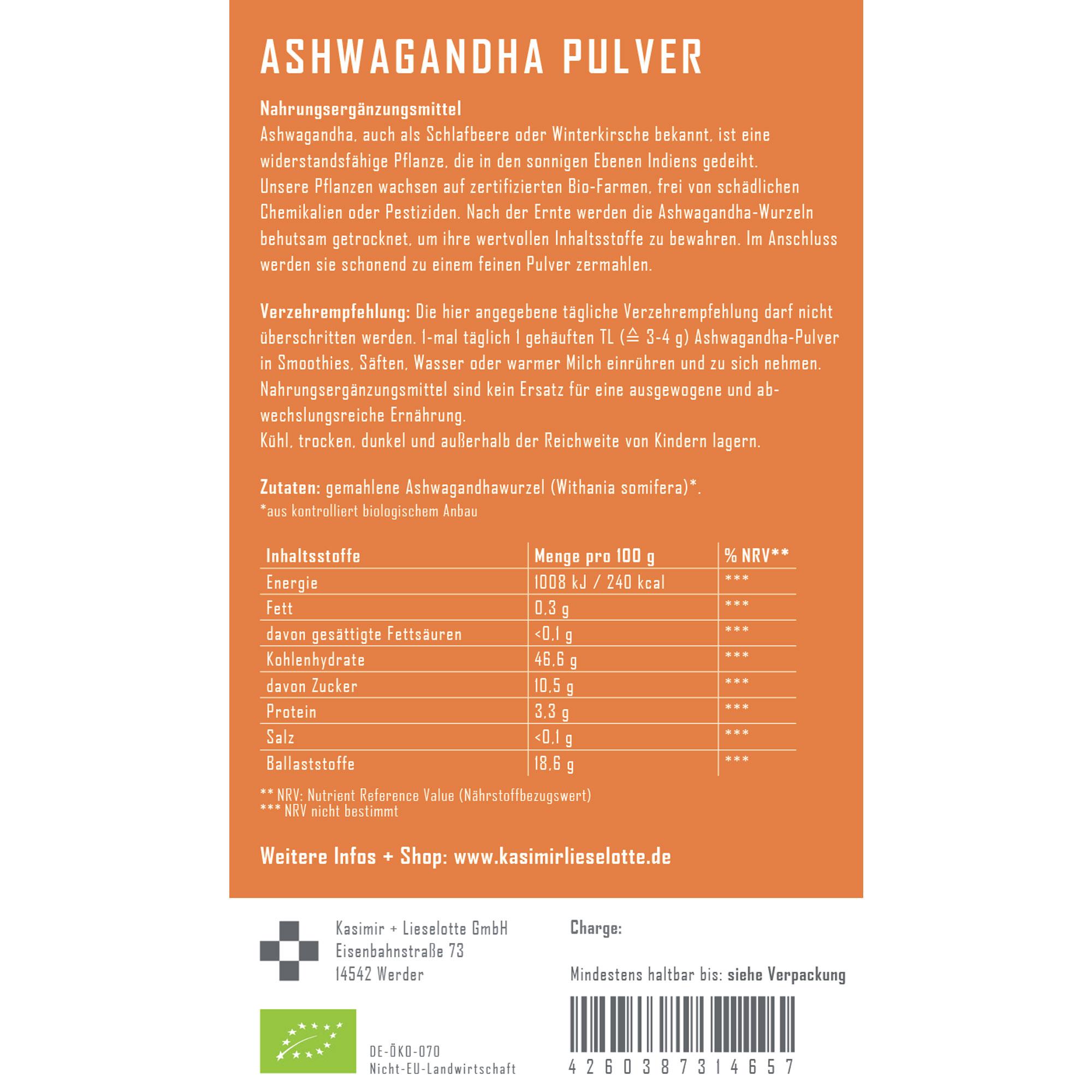 Bio Zertifizierung Ashwagandha Pulver