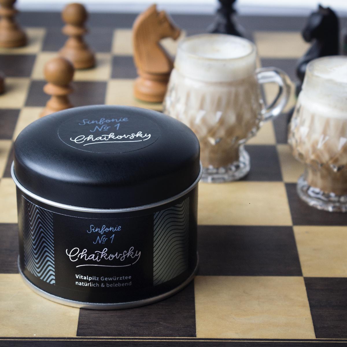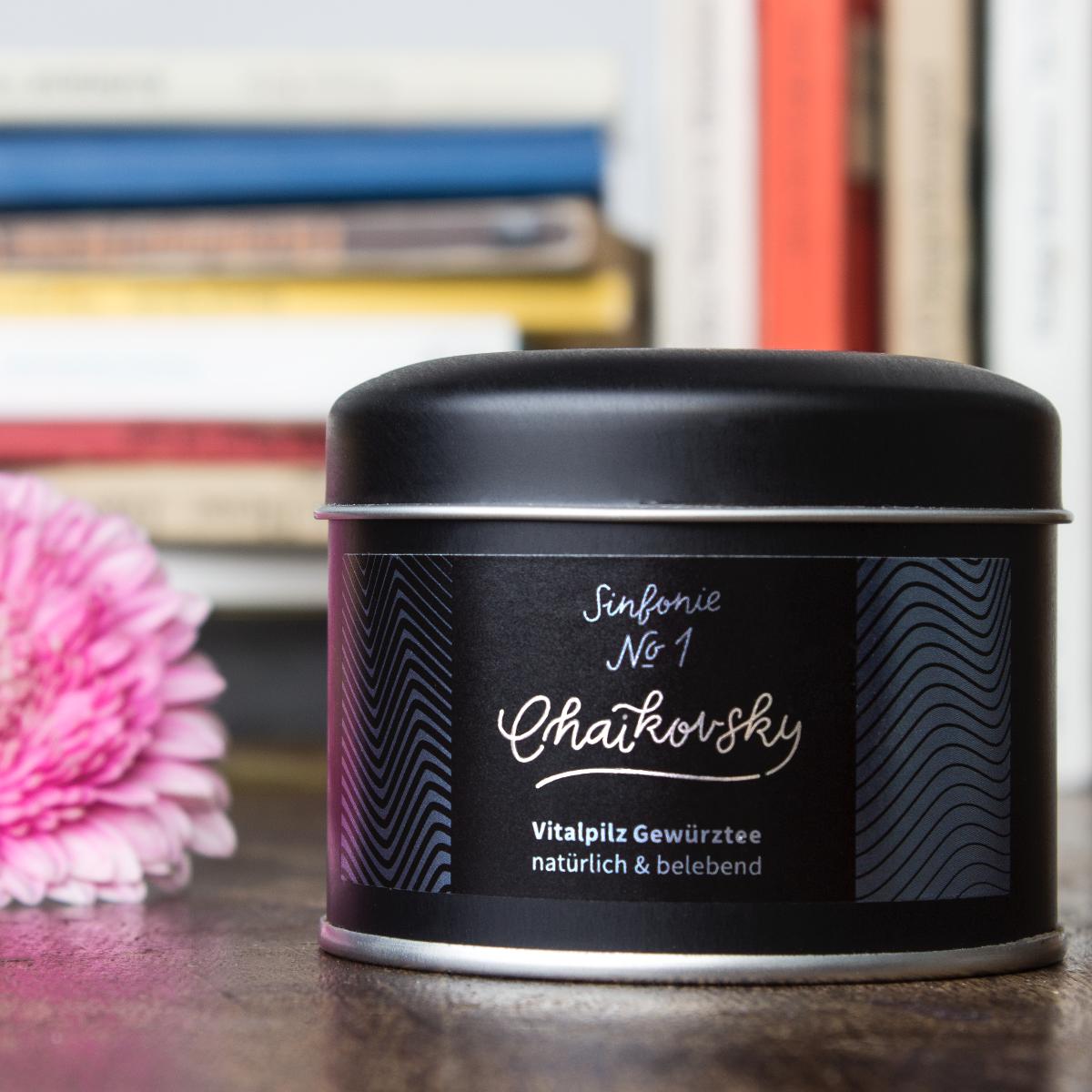 Unsere Chaikovsky Sinfonie № 1 in der handlichen 120 g Dose. Sinfonie № 1 trägt eine klassische Chai-Note und ist eine natürlich belebende Vitalpilz Gewürzteemischung für einen energiereichen Start in den Tag.
