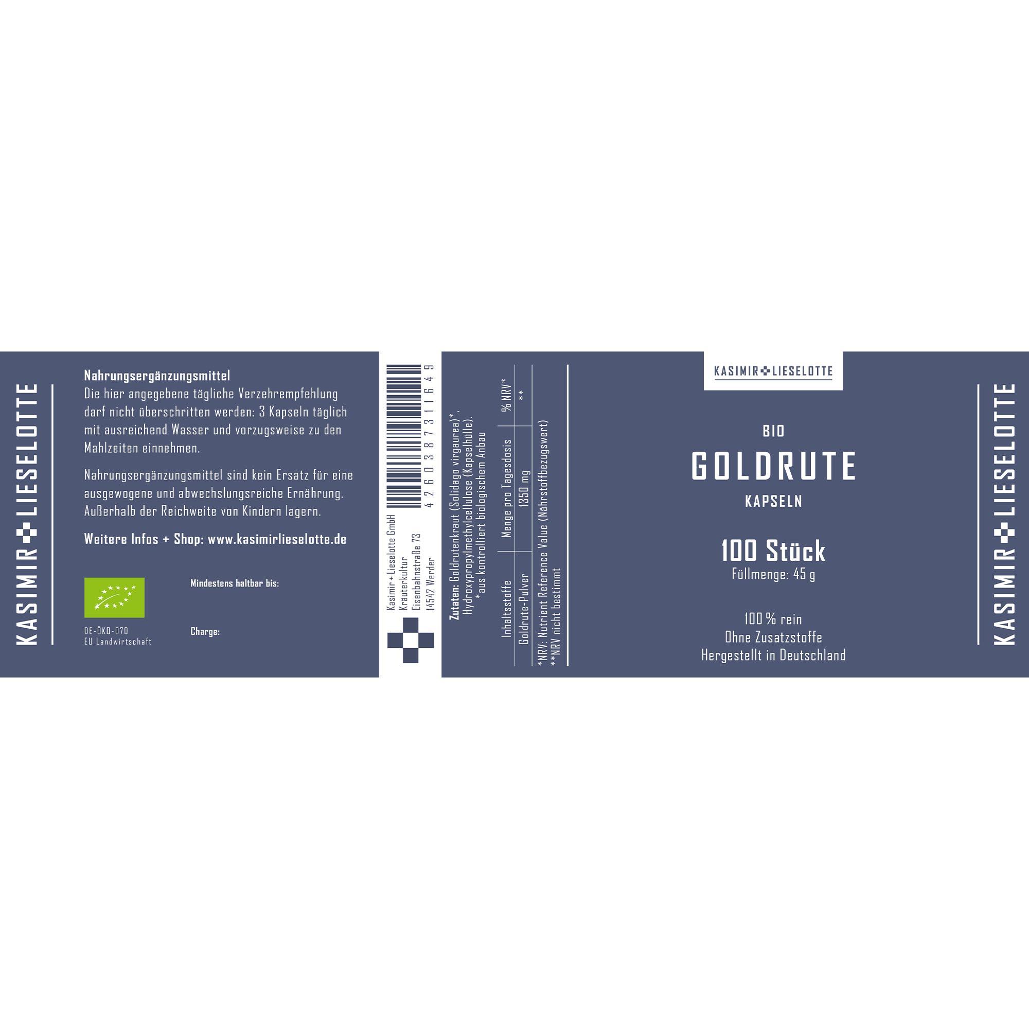 Unsere Goldrute-Kapseln werden aus getrocknetem Kraut der Riesen-Goldrute hergestellt. Es stammt aus kontrolliert biologischem Anbau. Unsere Kapseln sind veganfreundlich und werden in rein pflanzlicher Zellulose verkapselt. Alle Arbeitsschritte für unsere Goldrute-Kapseln finden in sorgsamer Handarbeit direkt in unserer Kräutermanufaktur statt.