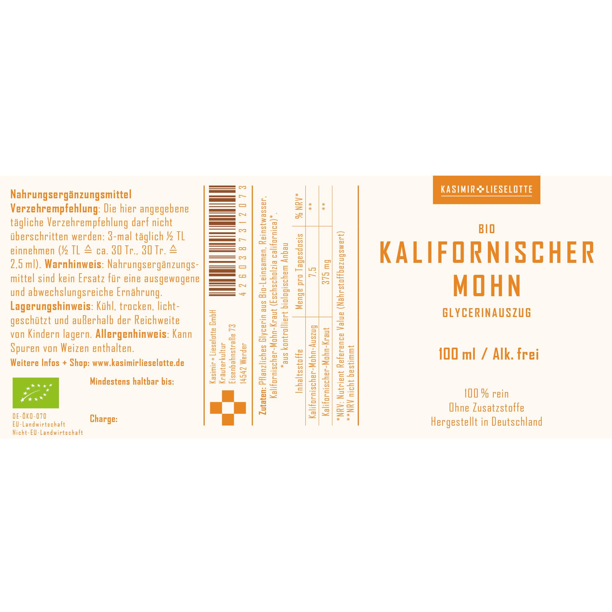 Kalifornischer Mohn Tinktur Alkoholfrei Bio 100 ml
