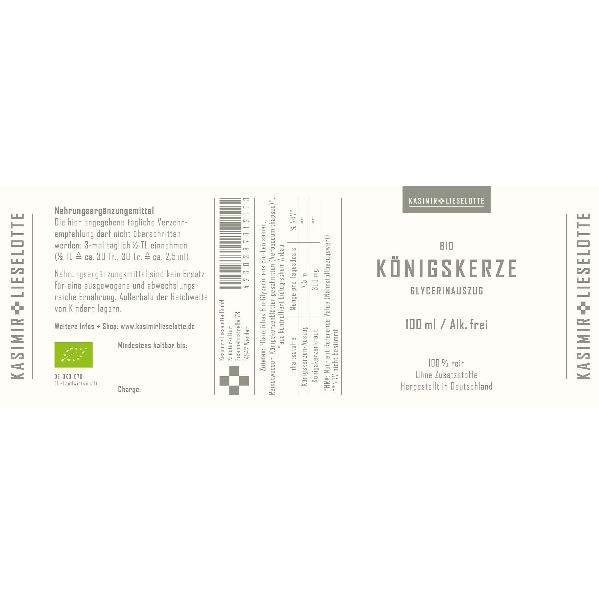 Rein pflanzliches Glycerin aus Bio-Leinsamen, Reinstwasser, Königskerze (Verbascum thapsus)*.