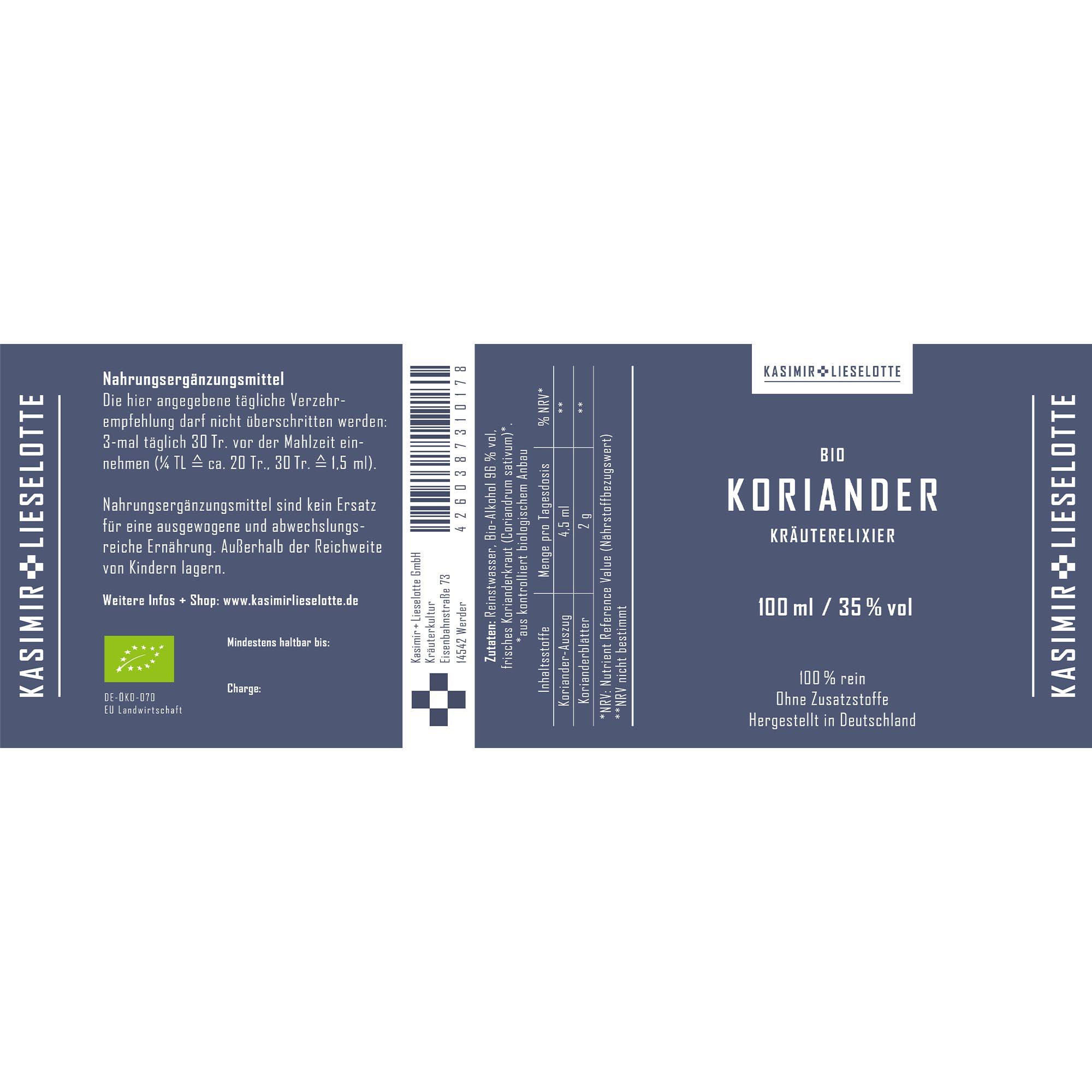 Reinstwasser, Bio-Alkohol (Alk. 96% vol), frisches Korianderkraut*.