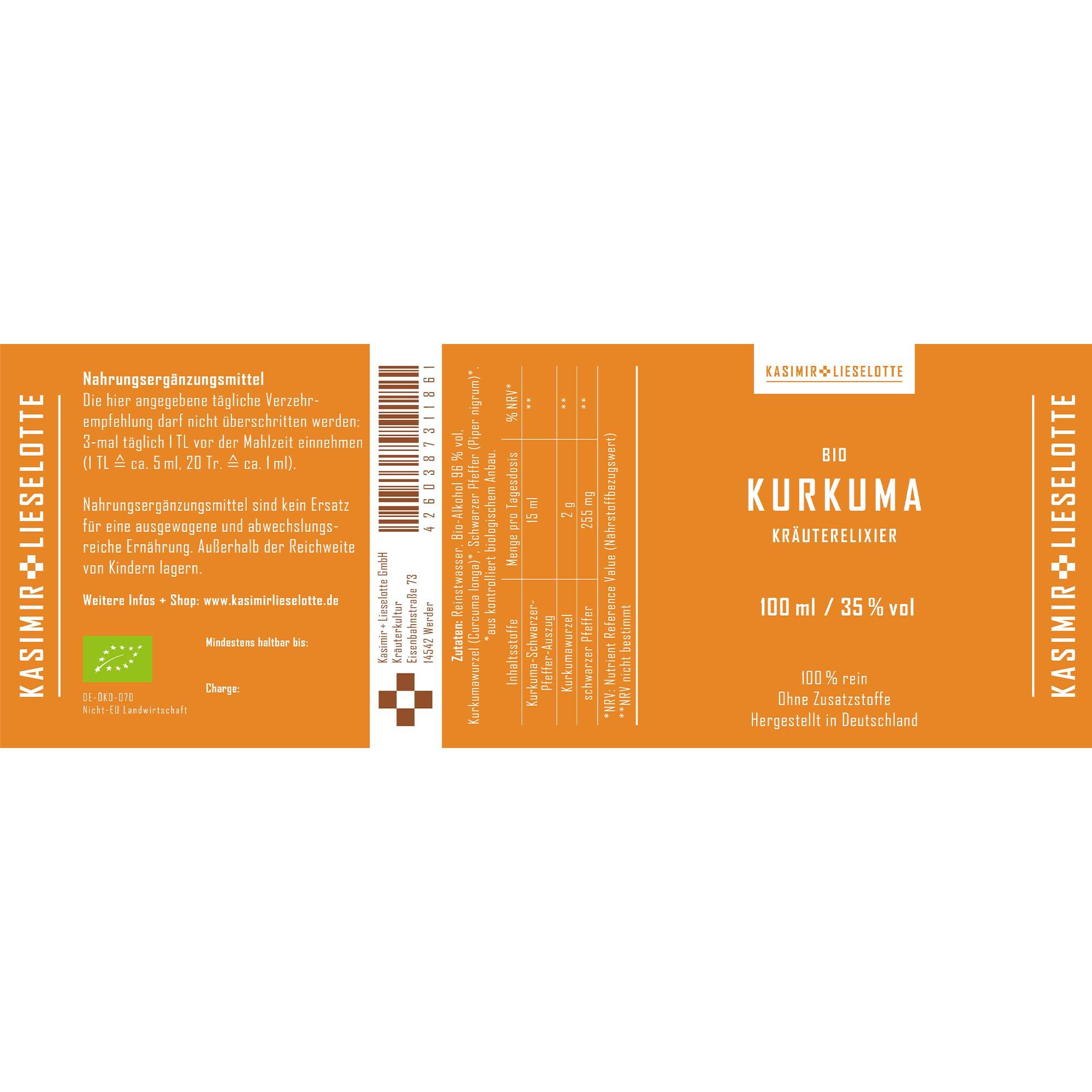 Unsere Kurkuma-Tinktur wird aus getrockneten und fein geschnittenem Kurkuma und Schwarzem Pfeffer hergestellt. Beides wird zu einem feinen Auszug (Ansatz 1:3) angesetzt, der regelmäßig und sorgsam per Hand aufgeschüttelt wird. Bis zum Abfüllen reift unsere Kurkuma-Tinktur über mindestens drei Monate.