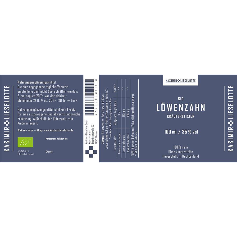 Reinstwasser, Bio-Alkohol (Alk. 96% vol), Löwenzahnwurzeln und -blätter*.