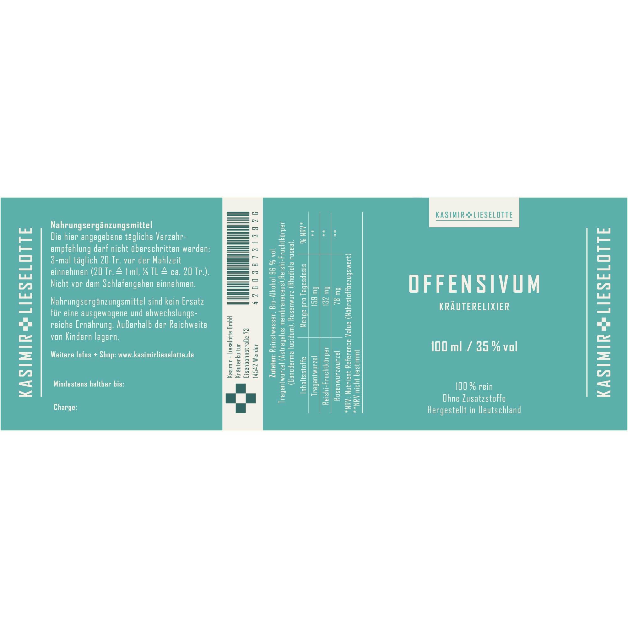 Unsere Offensivum-Tinktur wird mit getrocknetem und fein geschnittenem Rosenwurz, Astragalus und Reishi-Fruchtkörper zu einem feinen Auszug (Ansatz 1:3) angesetzt. Bis zum Abfüllen wird unsere Offfensivum-Tinktur regelmäßig und sorgsam per Hand aufgeschüttelt und reift über mindestens drei Monate.