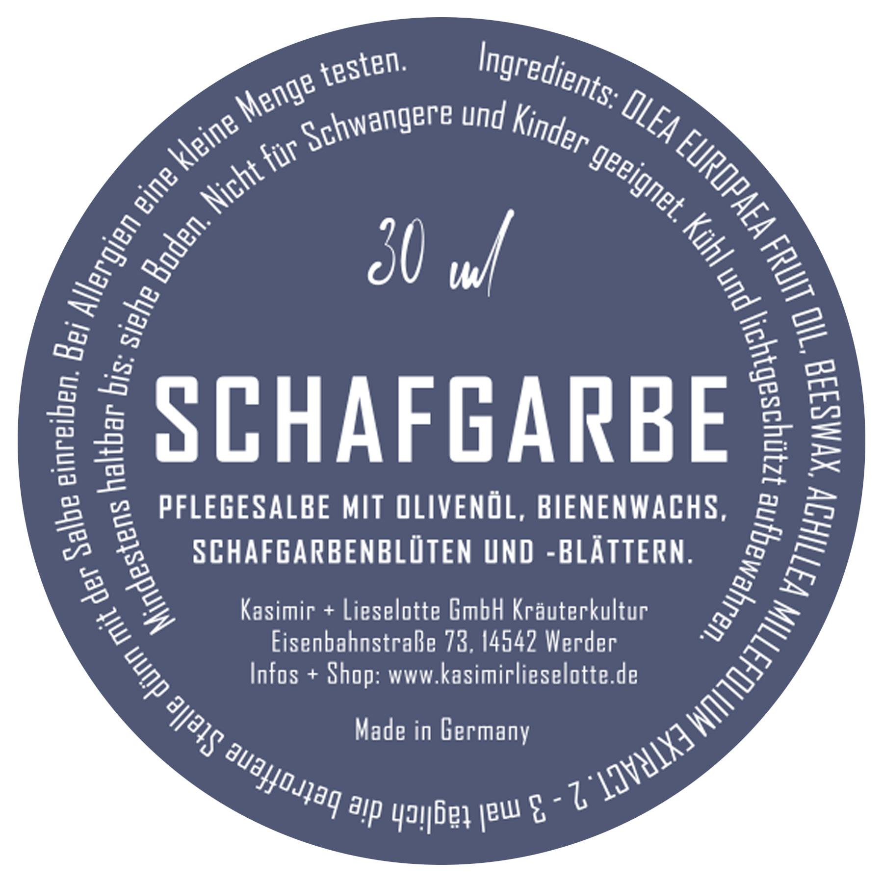 Die Schafgarbe Salbe aus der Kräutermanufaktur Kasimir & Lieselotte ist eine sanfte Hautpflege bei rissigen Lippen oder Händen, Sonnenbrand, leichten Verbrennungen und Insektenstichen. Sie kombiniert die traditionelle Nutzung der Schafgarbe mit pflegenden Salbengrundlagen, um irritierte Haut möglichst schonend zu unterstützen.