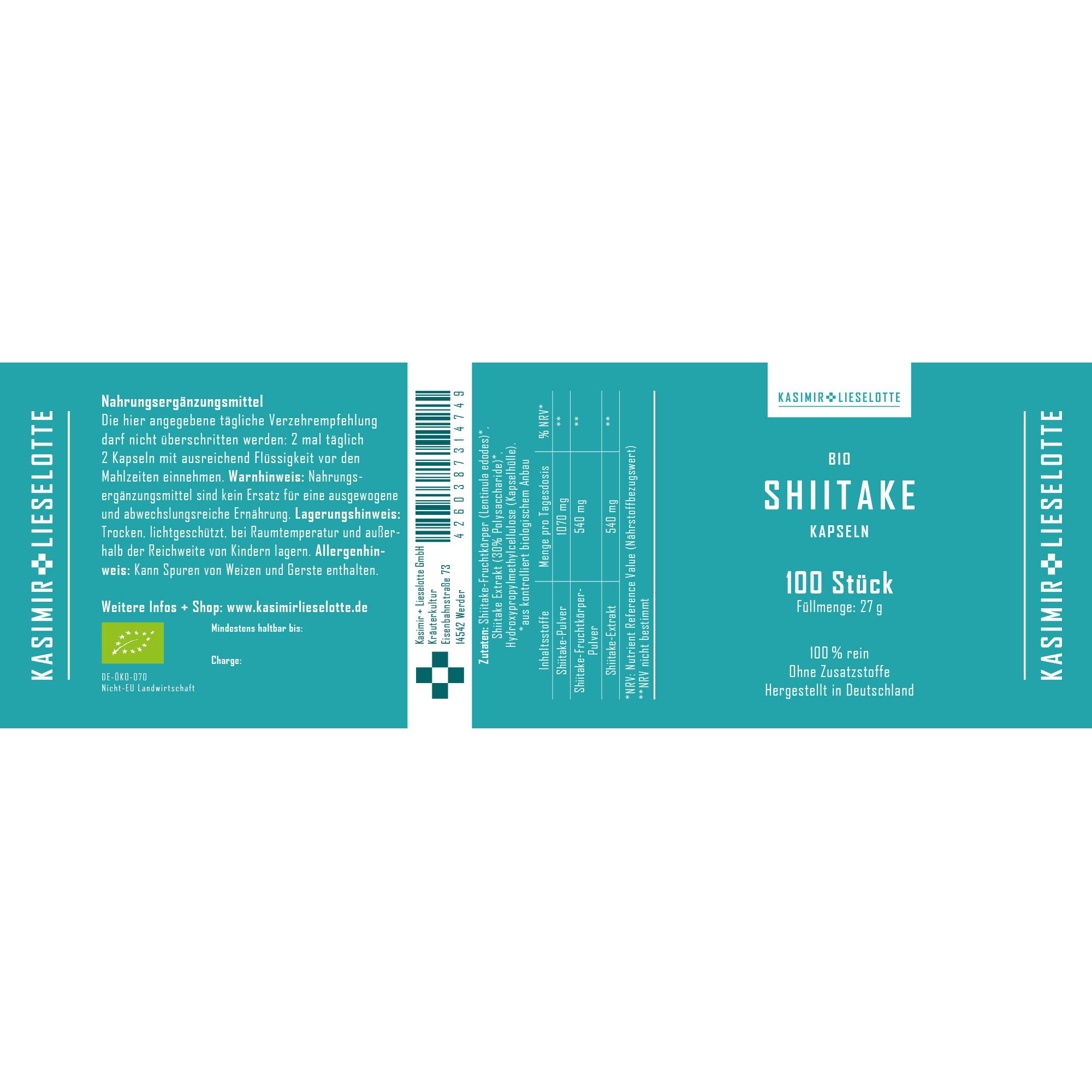 Shiitake Kapseln Bio 100 Stück